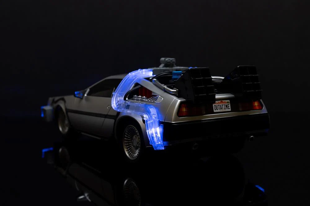 - LED light-up features – Flux capacitor, headlights, and time circuits glow.