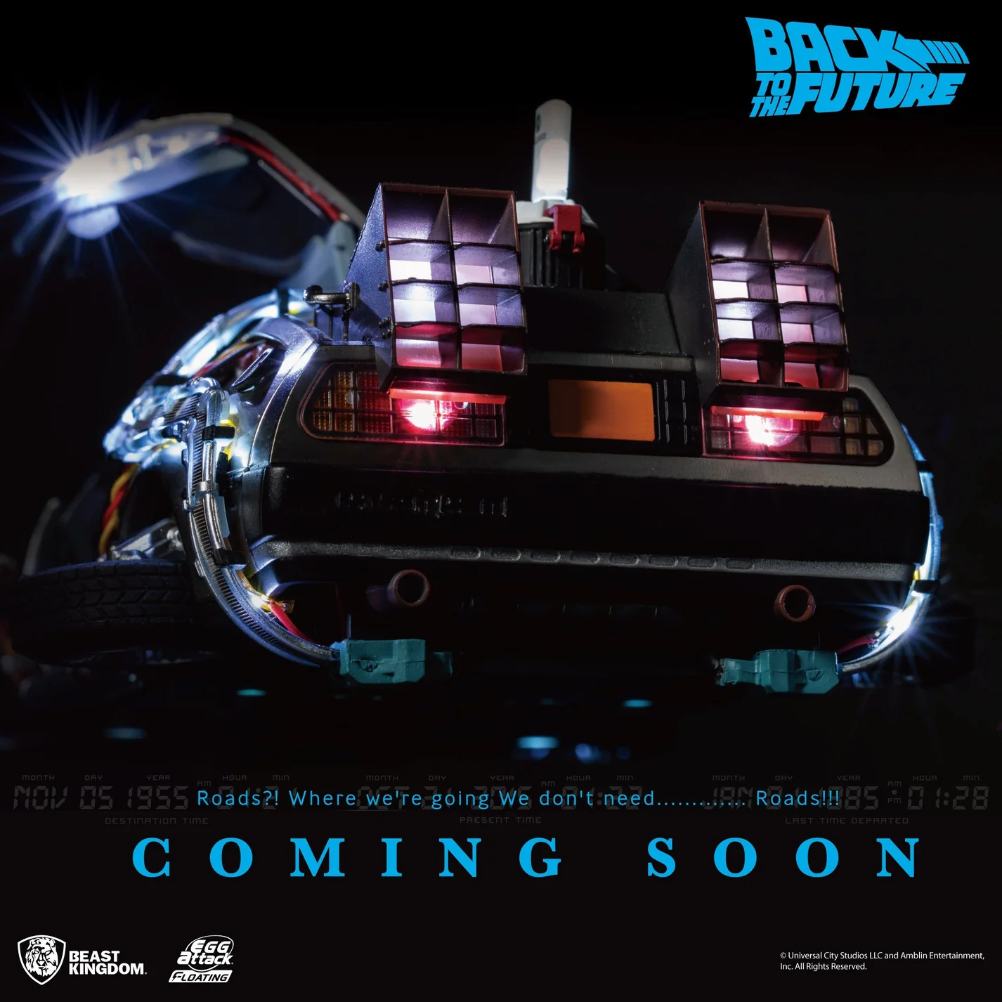 - Time circuit dashboard – Fully illuminated with the destination time, present time, and last departed time.